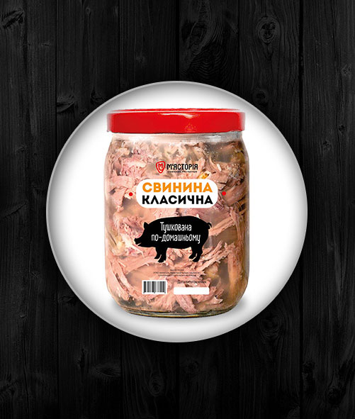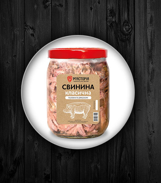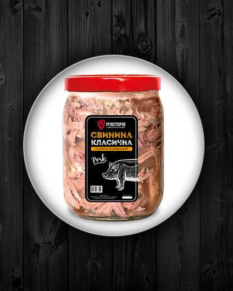 Create label design for canned meat (TM «Myastoria» own production). Labels should keep brand recognition, distinguish the product from other and be convenient for sticking on jars manually.